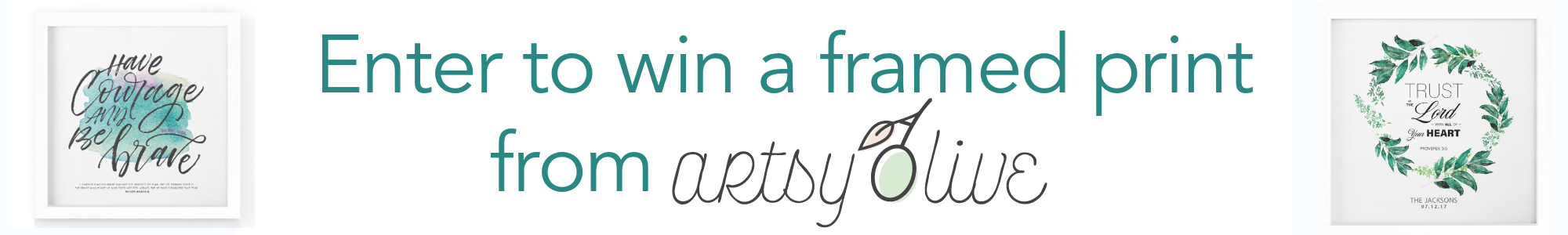 Artsy Olive is hosting a giveaway and five lucky people will win a framed print. Just click here and enter!