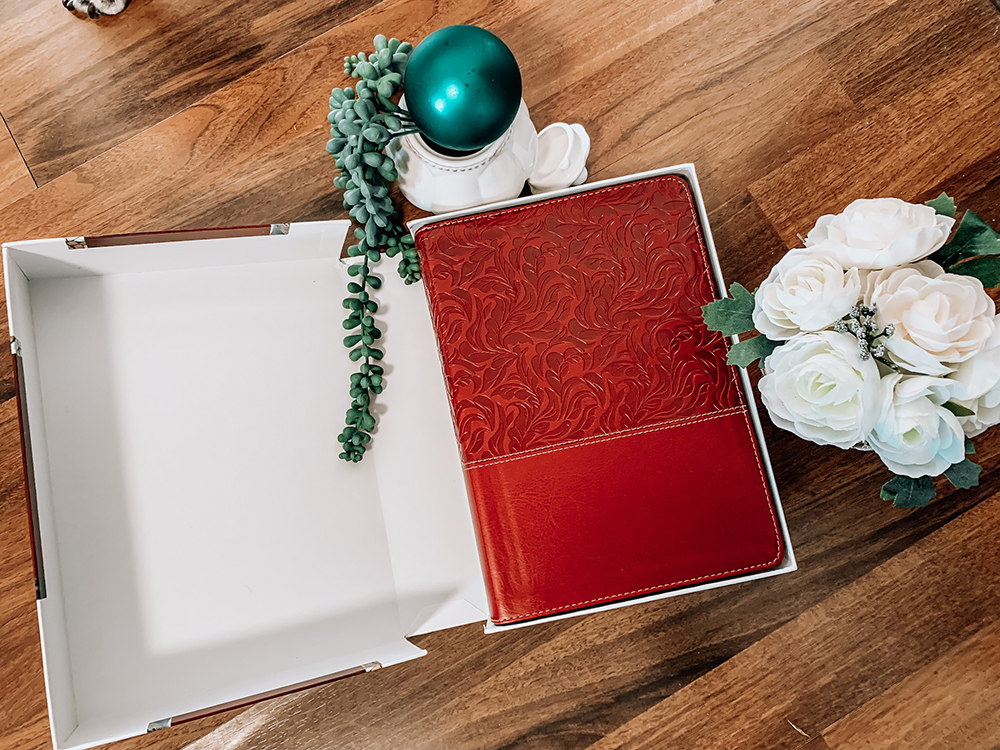 The Bible is a beautiful burgundy color with an “etched” design and would make a lovely gift for yourself or someone else and great for graduates or newlyweds to begin their new journey with the guidance of the Bible.