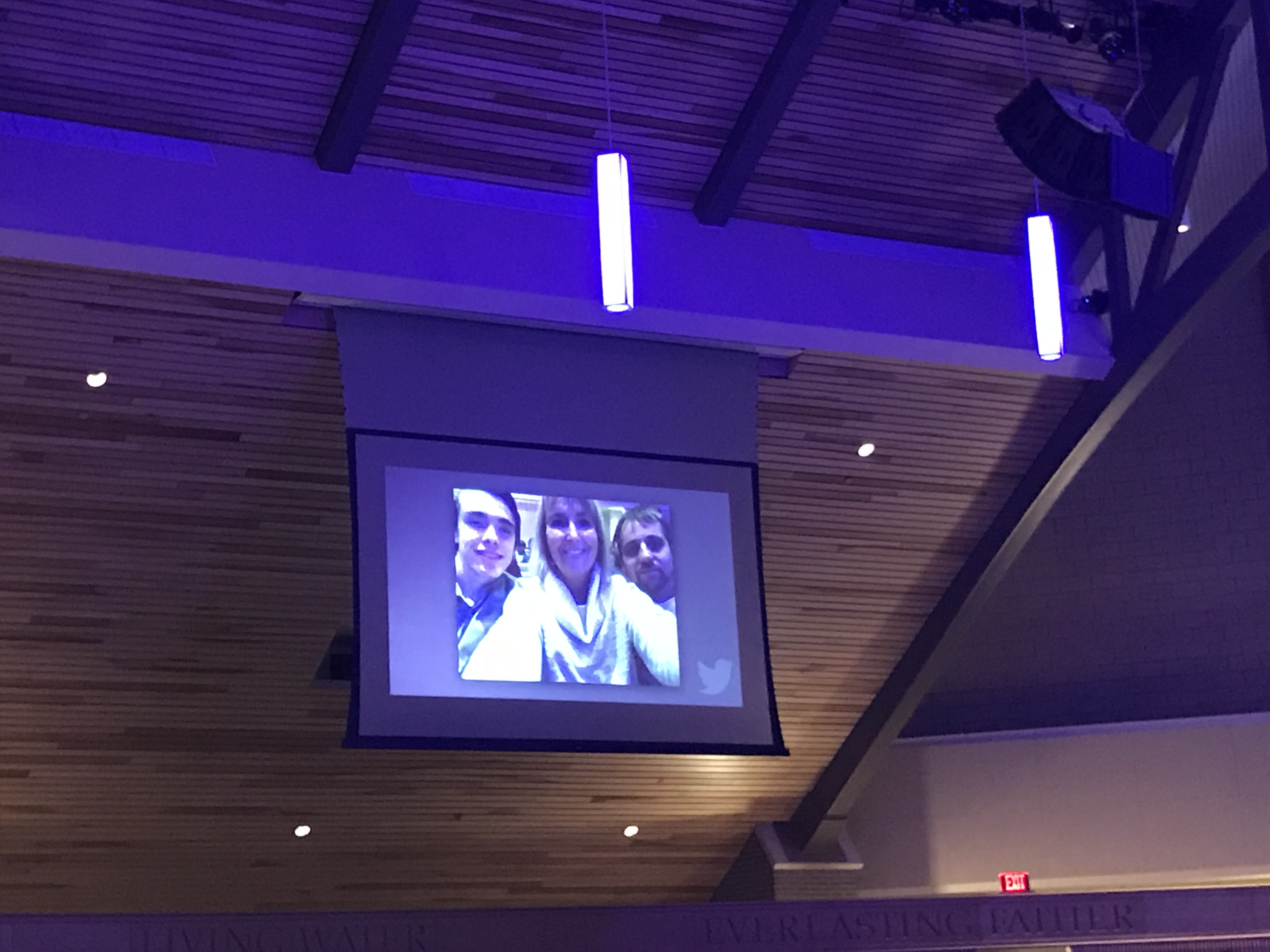 I tweeted while we were at the comedy show and we were featured on the jumbo screen!