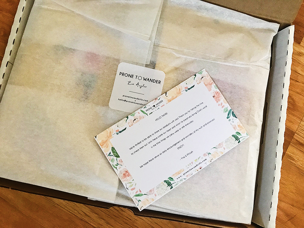 Guys, can you stand another giveaway? It must be giveaway season, like awards season in Hollywood. This is another fun one. Prone to Wander LA is a company who “creatively brings God’s Word in the little things we carry, wear, or see everyday. We exist to bless little lives with the little things we create.”